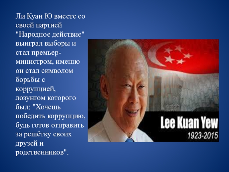 Слайд 9Ли Куан Ю вместе со своей партией "Народное действие" выиграл выборы