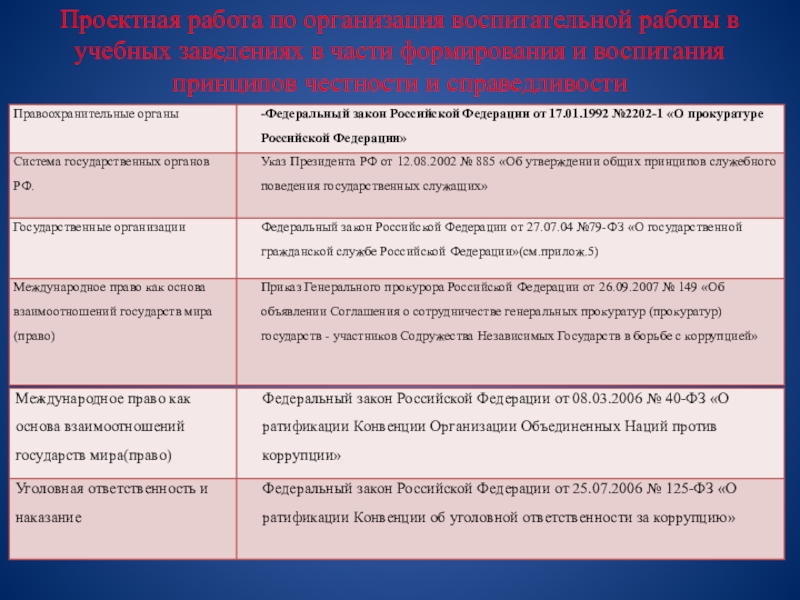 Глава 5. Проектная работа по организация воспитательной работы в учебных заведениях в части формирования и воспитания принципов честности и справедливости.