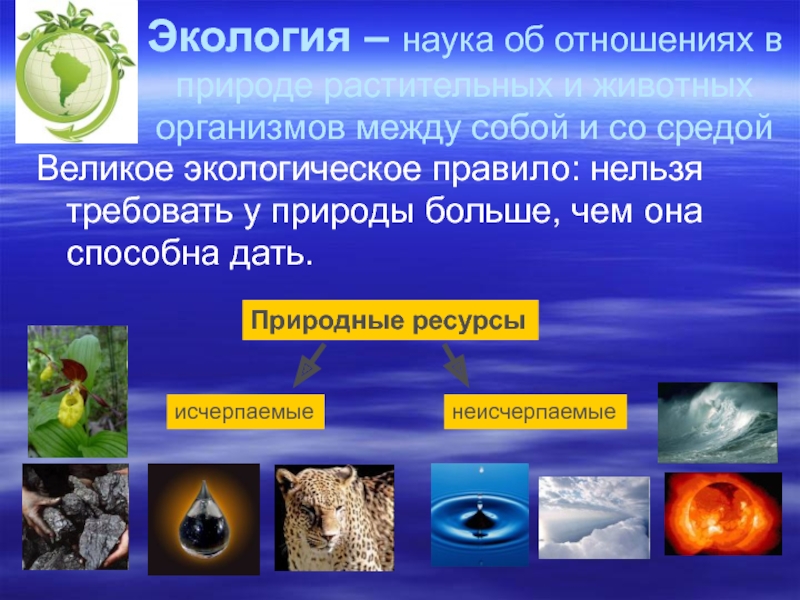 Великое экологическое правило: нельзя требовать у природы больше, чем она способна дать.