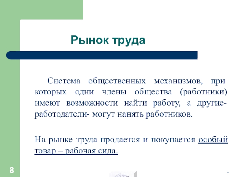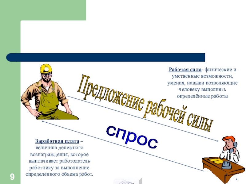 Рабочая сила- физические и умственные возможности, умения, навыки позволяющие человеку выполнять определённые работы
