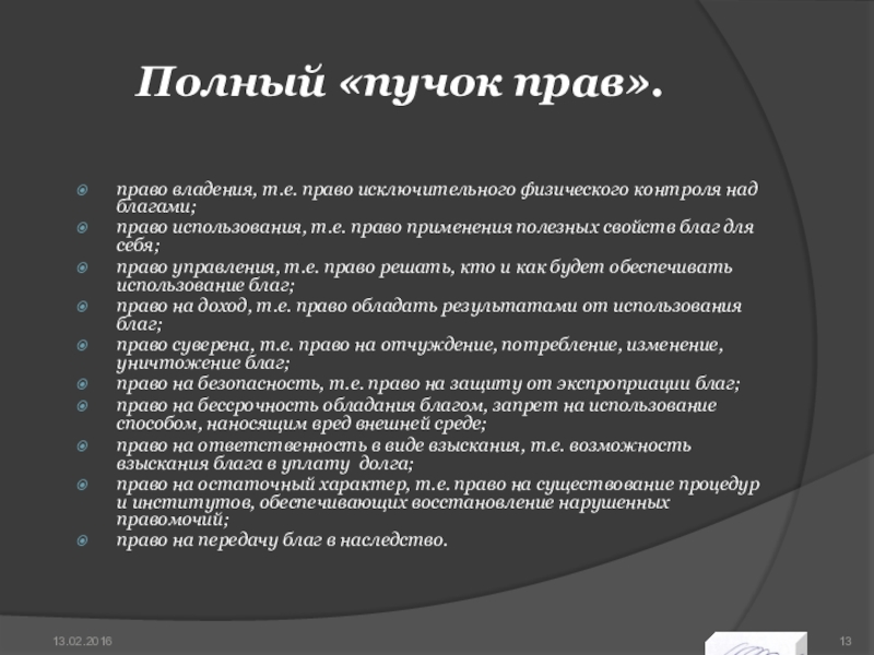 право суверена, т.е. право на отчуждение, потребление, изменение, уничтожение благ;