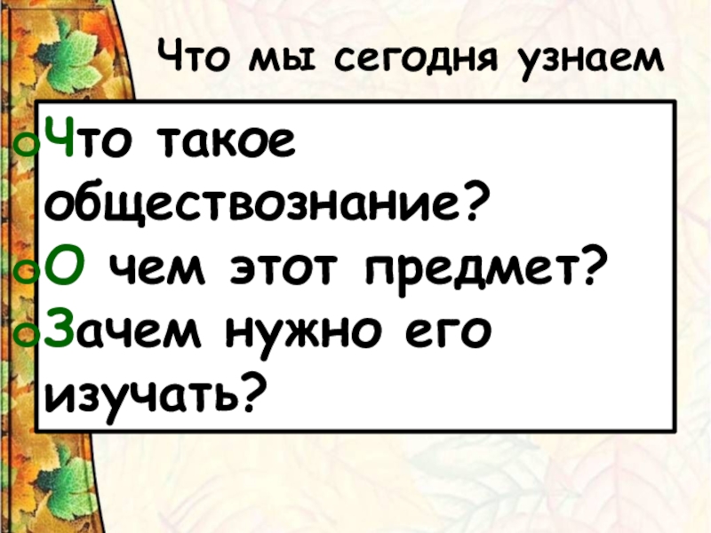 Что такое обществознание?О чем этот предмет?Зачем нужно его изучать?Что мы сегодня узнаем