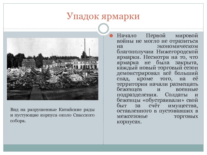 Вид на разрушенные Китайские ряды и пустующие корпуса около Спасского собора.