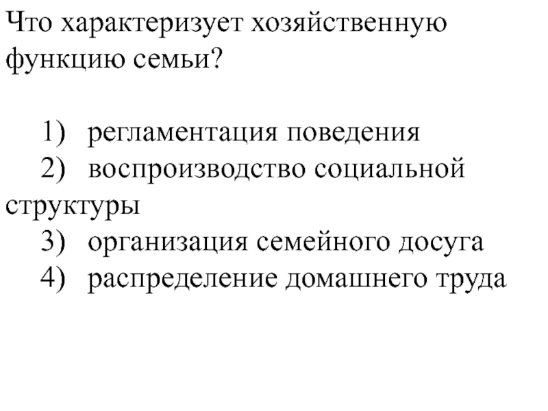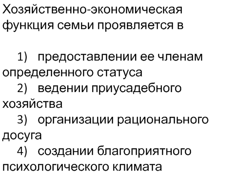 Слайд 4Что характеризует хозяйственную функцию семьи?