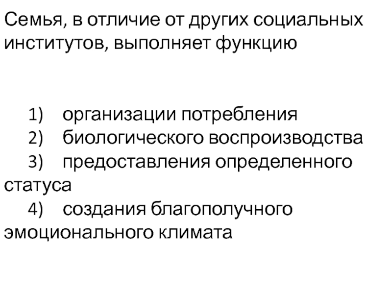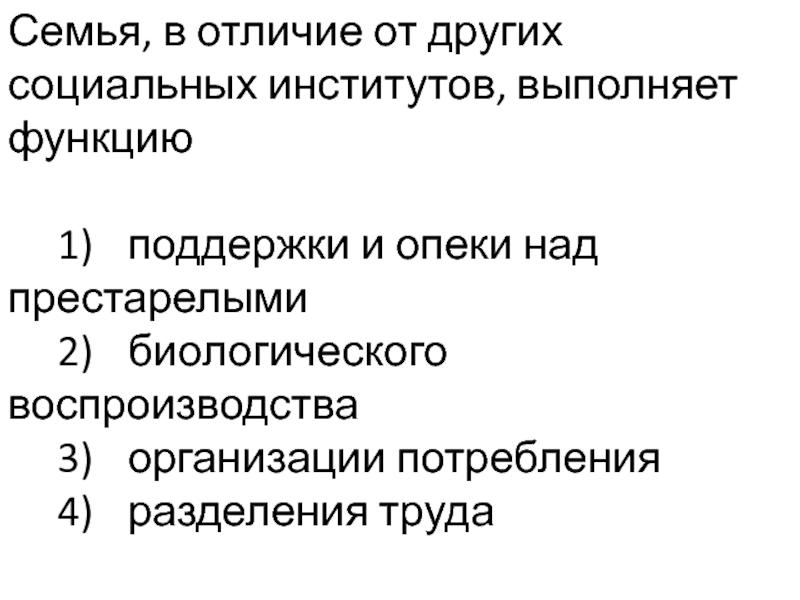 Слайд 24Семья, в отличие от других социальных институтов, выполняет функцию