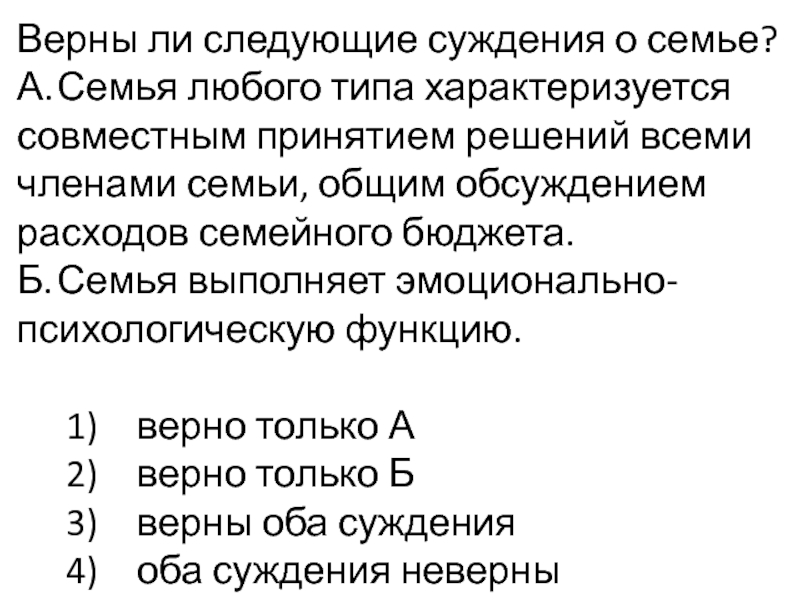 Слайд 13Верны ли следующие суждения о тенденциях развития семьи?