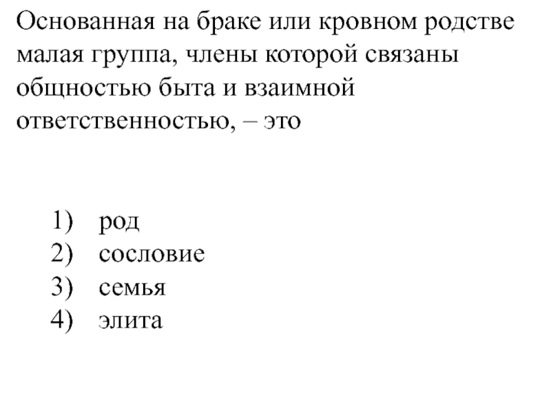 Слайд 8Основанная на браке или кровном родстве малая группа, члены которой связаны