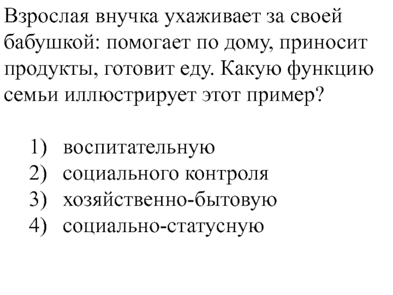 готовит еду. Какую функцию семьи иллюстрирует этот пример?