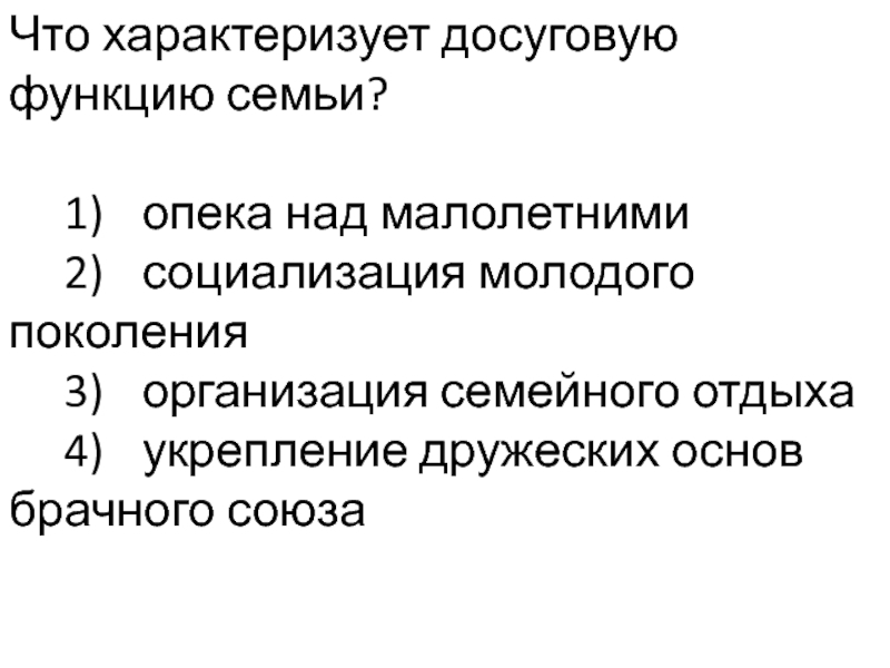 Слайд 28Какая функция семьи проявляется в формировании чувства безопасности и психологического комфорта