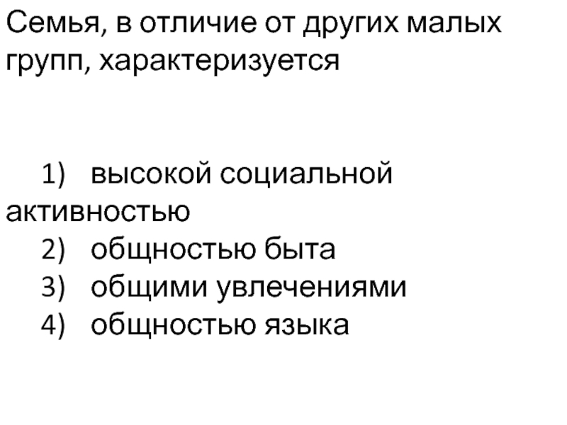 Слайд 9Семья, в отличие от других малых социальных групп, характеризуется