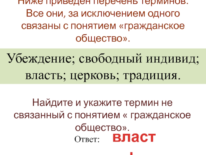 Найдите и укажите термин не связанный с понятием « гражданское общество».
