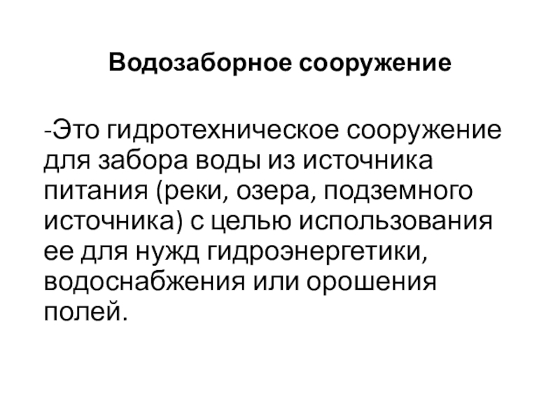 -Это гидротехническое сооружение для забора воды из источника питания (реки,