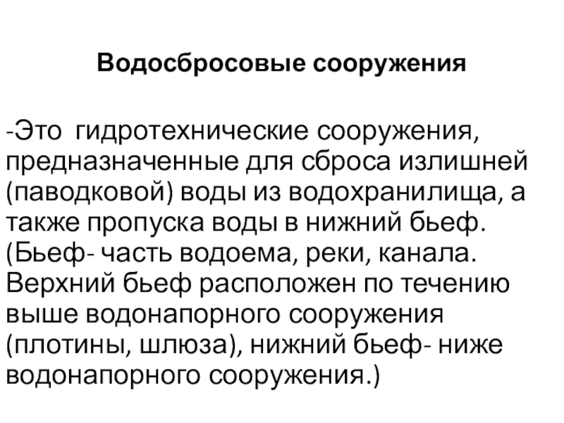 -Это гидротехнические сооружения, предназначенные для сброса излишней (паводковой) воды из