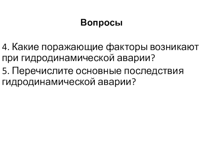 4. Какие поражающие факторы возникают при гидродинамической аварии?
