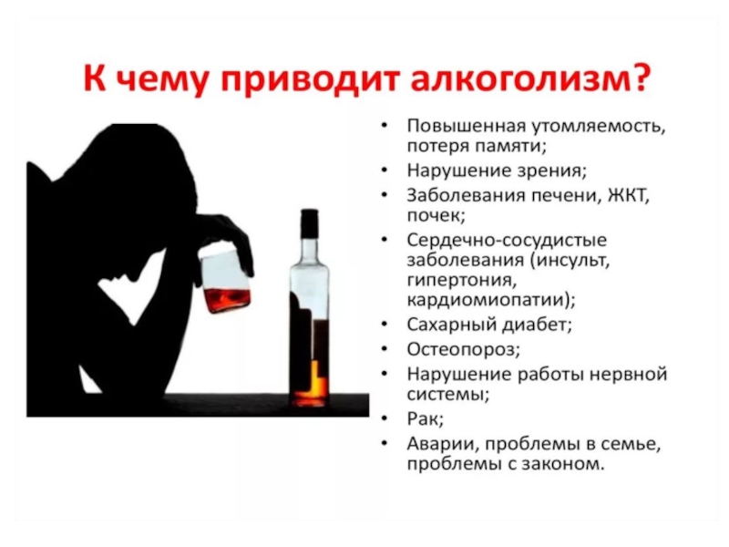 Слайд 9Алкоголизм – заболевание, при котором наблюдается физическая и психическая зависимость от алкоголя.