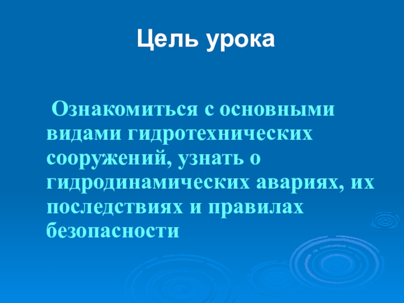 Ознакомиться с основными видами гидротехнических сооружений, узнать о гидродинамических авариях,