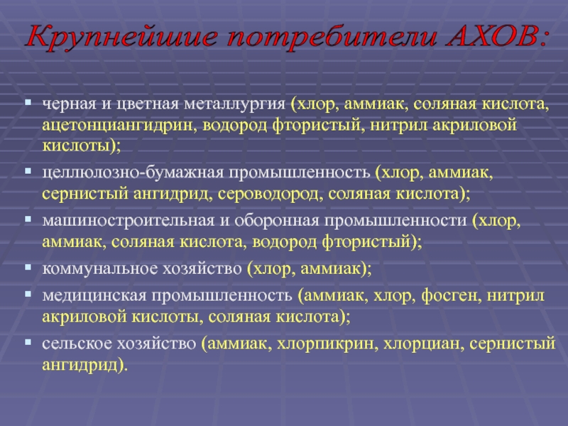 Крупнейшие потребители АХОВ: