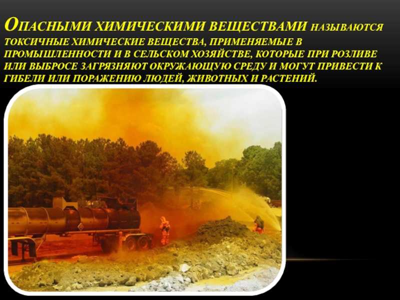 Слайд 5Опасными химическими веществами называются токсичные химические вещества, применяемые в промышленности и