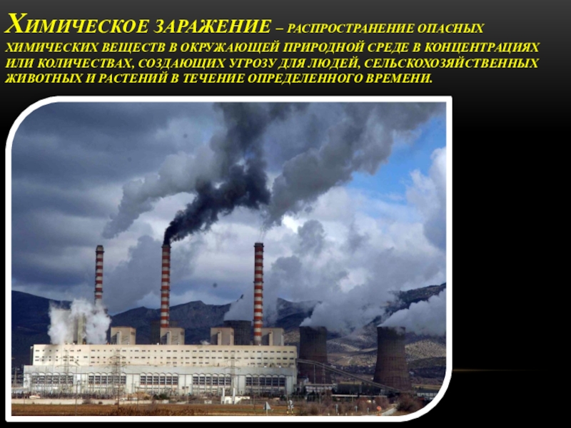 Слайд 8Химическое заражение – распространение опасных химических веществ в окружающей природной среде