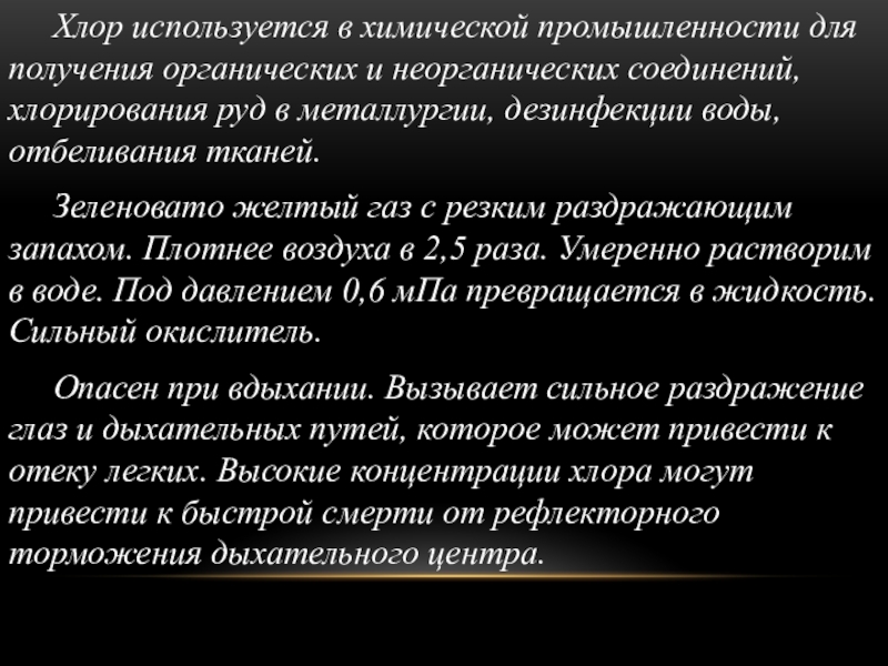 Хлор используется в химической промышленности для получения органических и неорганических соединений,