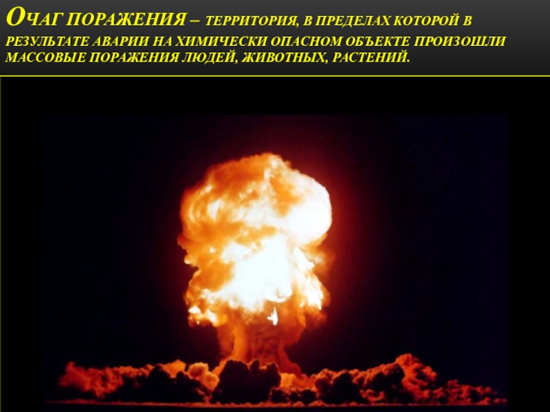 Слайд 10Очаг поражения – территория, в пределах которой в результате аварии на