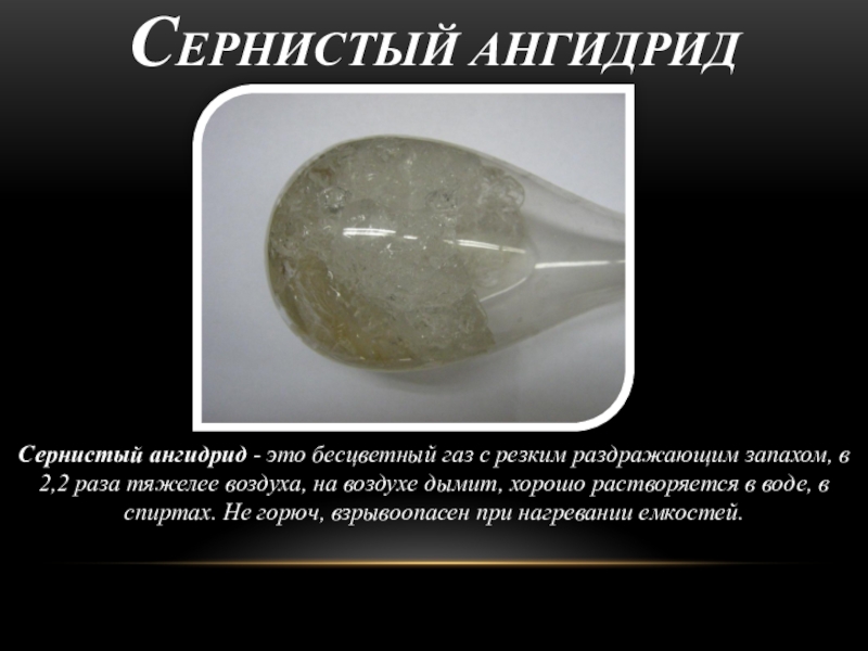 Сернистый ангидрид - это бесцветный газ с резким раздражающим запахом,