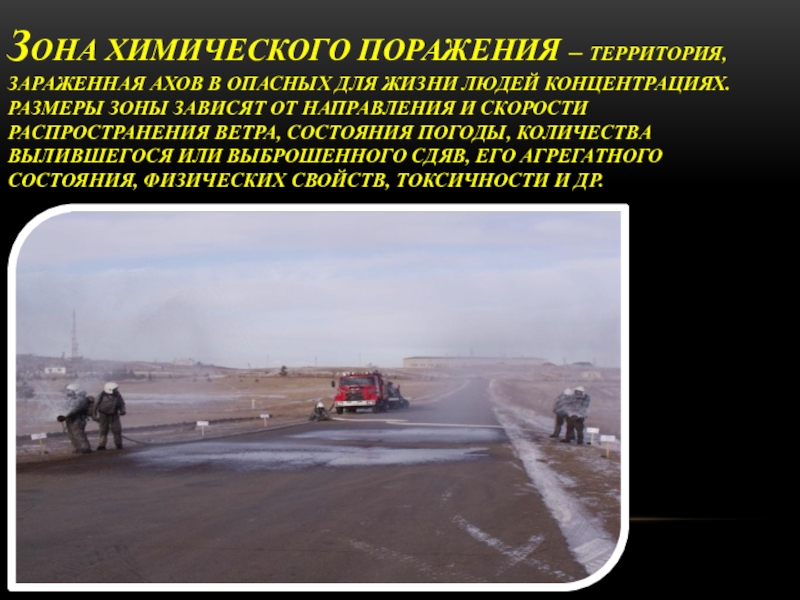 Слайд 9Зона химического поражения – территория, зараженная АХОВ в опасных для жизни