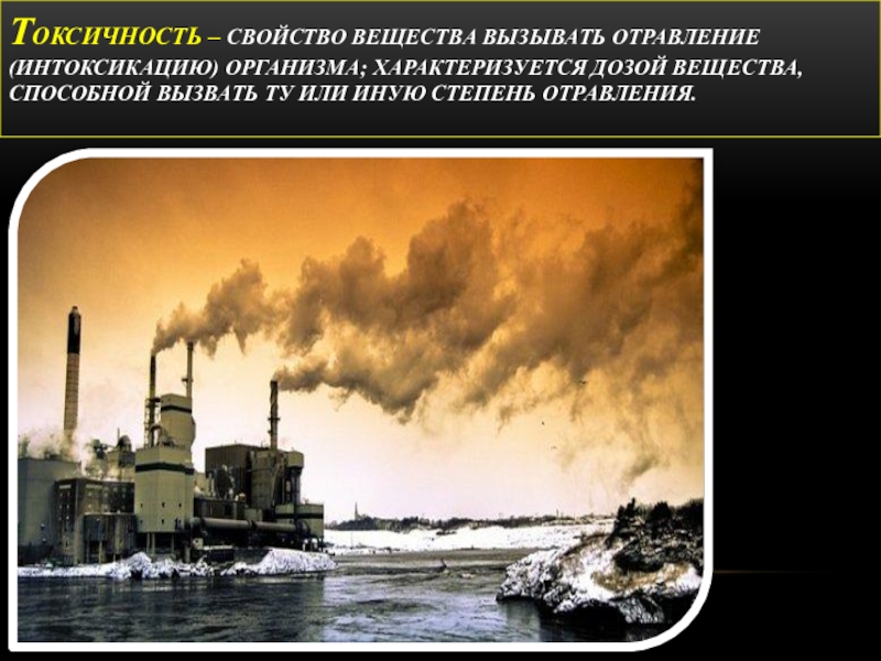 Слайд 11Токсичность – свойство вещества вызывать отравление (интоксикацию) организма; характеризуется дозой вещества,