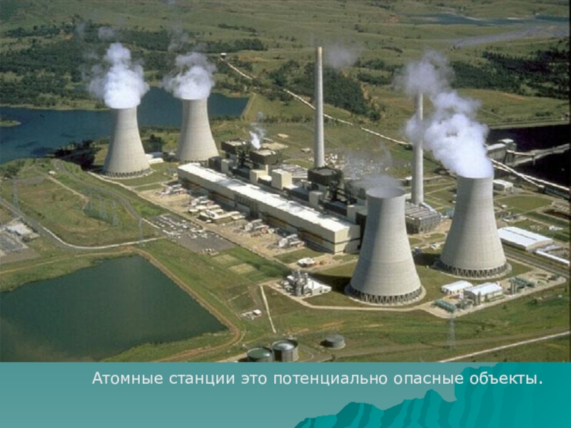 Слайд 14Атомные станции это потенциально опасные объекты.