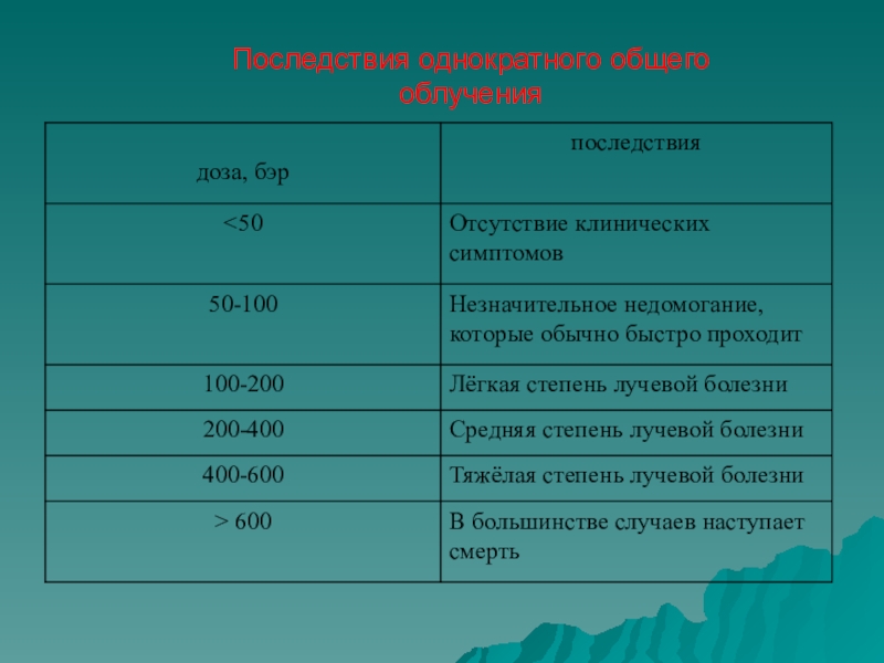 Лучевая болезнь возникает при воздействии на организм ионизирующих излучений в дозах, превыша-ющих предельно допустимых.Острая лучевая болезнь лёгкой(I)
