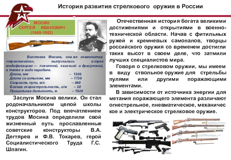 Отечественная история богата великими достижениями и открытиями в военно-технической области. Начав с фитильных ружей и кремневых самопалов, творцы российского оружия со временем достигли таких высот в своем деле, что затмили лучших специалистов мира.
