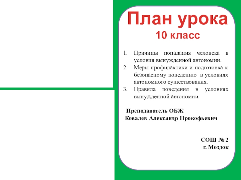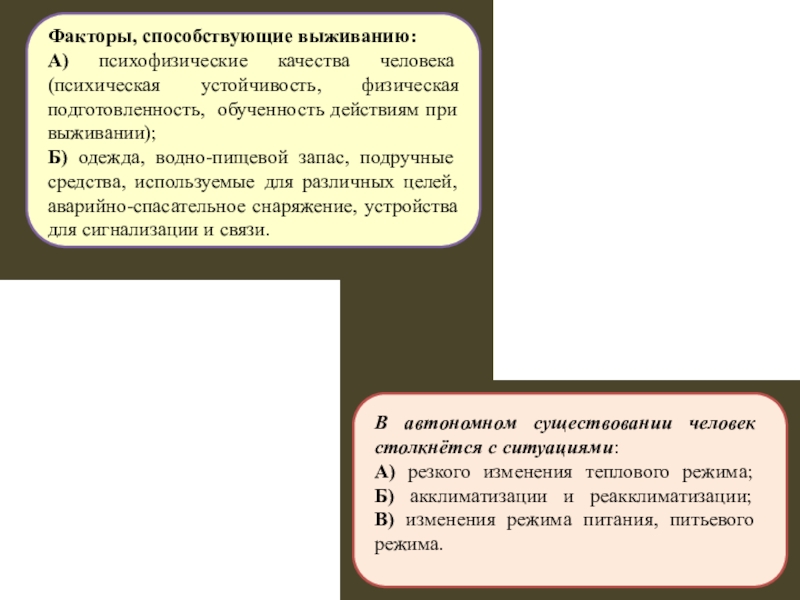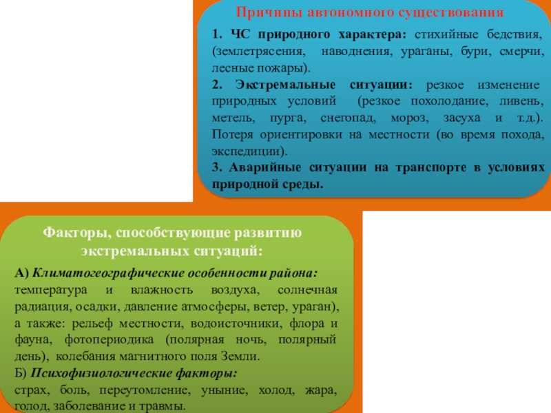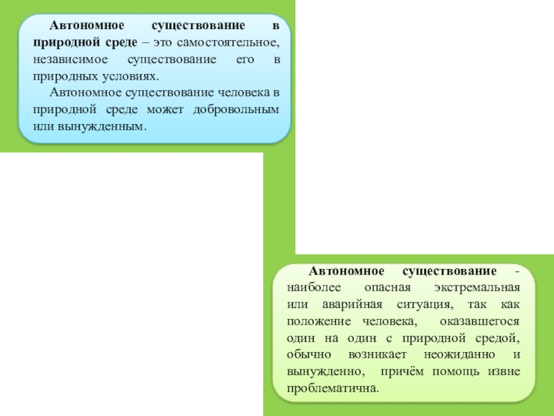 Автономное существование человека в природной среде может добровольным или вынужденным.