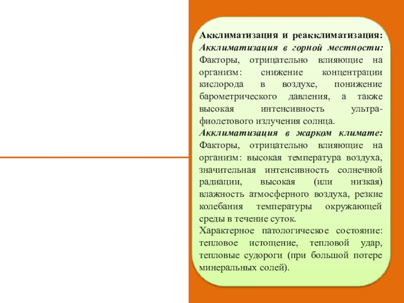температура и влажность воздуха, солнечная радиация, осадки, давление атмосферы, ветер, ураган), а также: рельеф местности, водоисточники, флора и фауна, фотопериодика (полярная ночь, полярный день), колебания магнитного поля Земли.