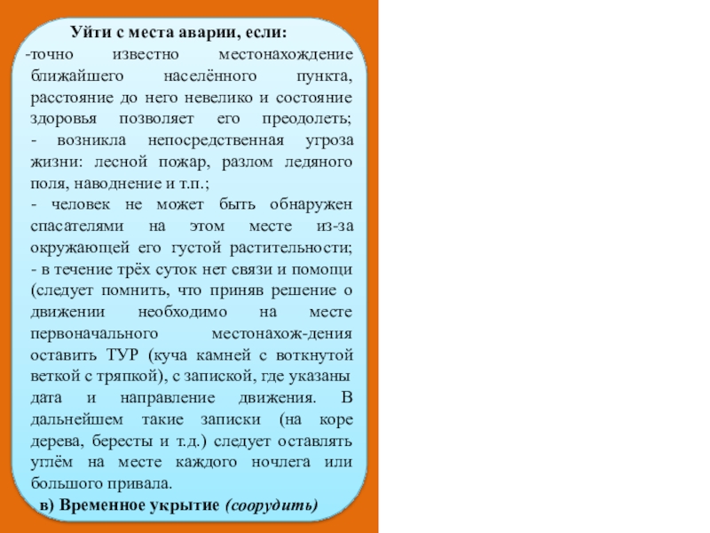 б) оборудованием простейших временных укрытий из природных и подручных материалов;