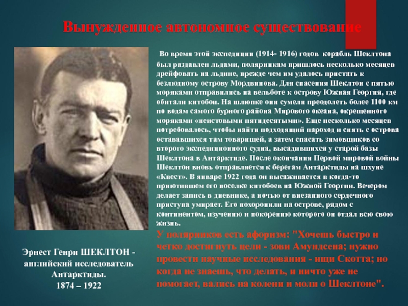 Эрнест Генри ШЕКЛТОН - английский исследователь Антарктиды.