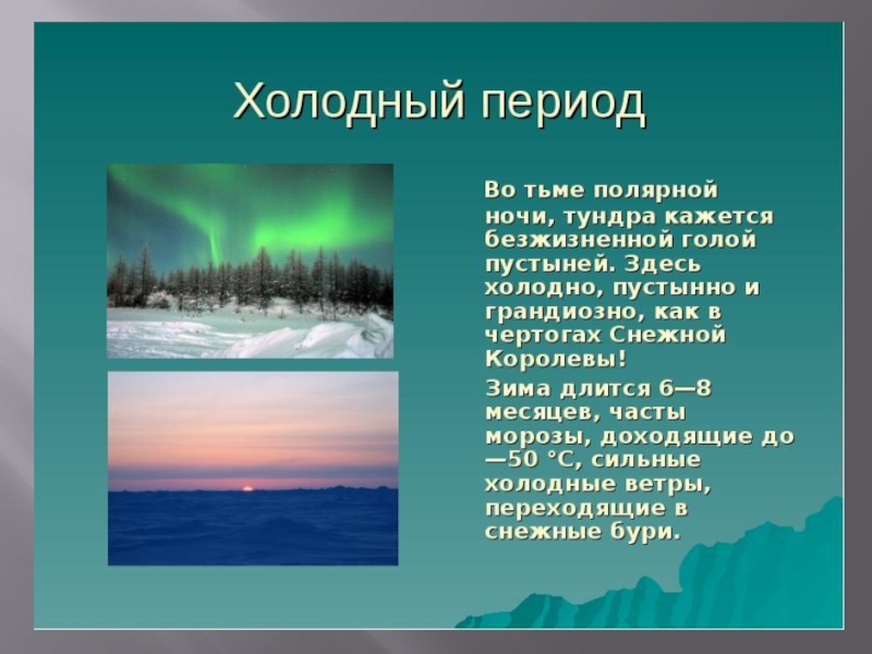 Постарайтесь передвигаться не тратя сил, соорудите снегоступы, не выходите на речной лёд, весной и осенью, а летом проверяйте почву на заболоченность шестом, часто почва в тундре заболочена.