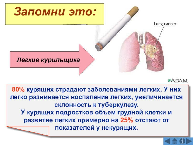 Курение – главный фактор риска заболевания лёгких и сердечно-сосудистой системы.