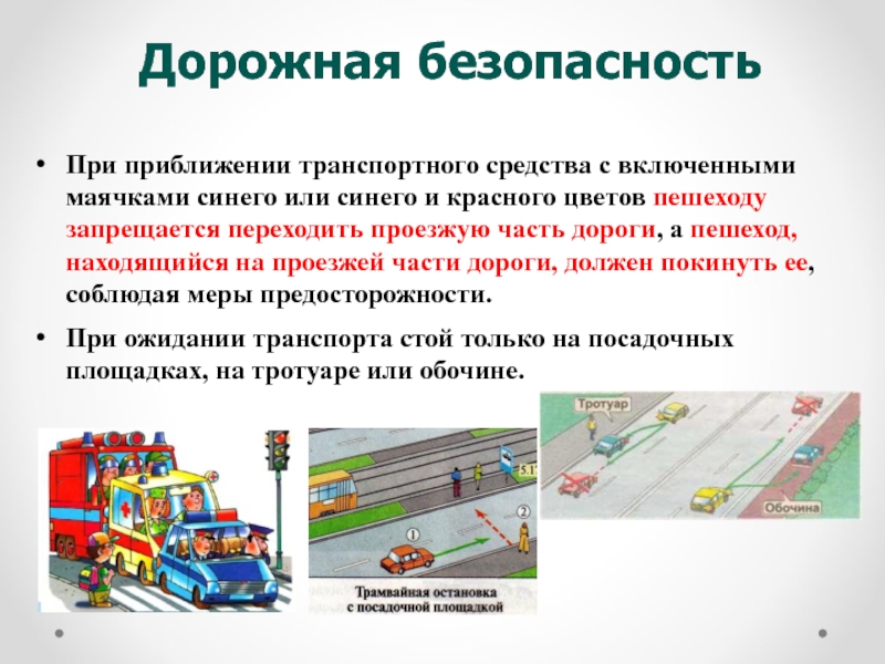 При ожидании транспорта стой только на посадочных площадках, на тротуаре или обочине.
