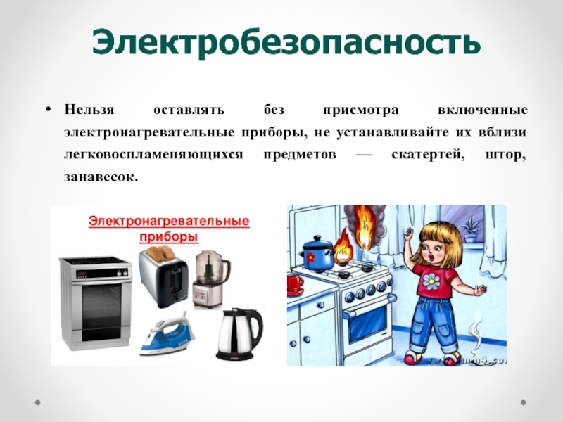 Нельзя оставлять без присмотра включенные электронагревательные приборы, не устанавливайте их вблизи