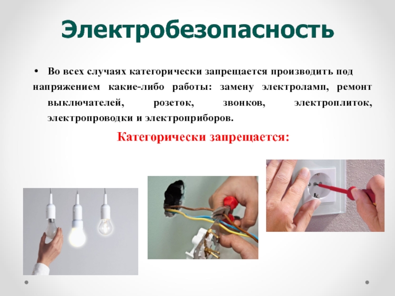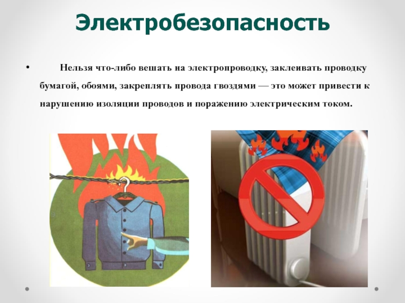 Нельзя что-либо вешать на электропроводку, заклеивать проводку