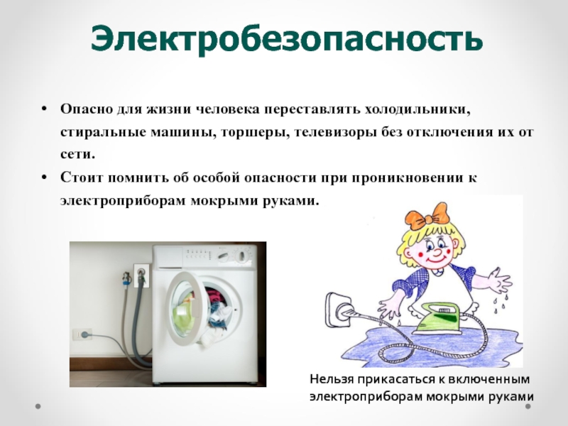 Стоит помнить об особой опасности при проникновении к электроприборам мокрыми руками.