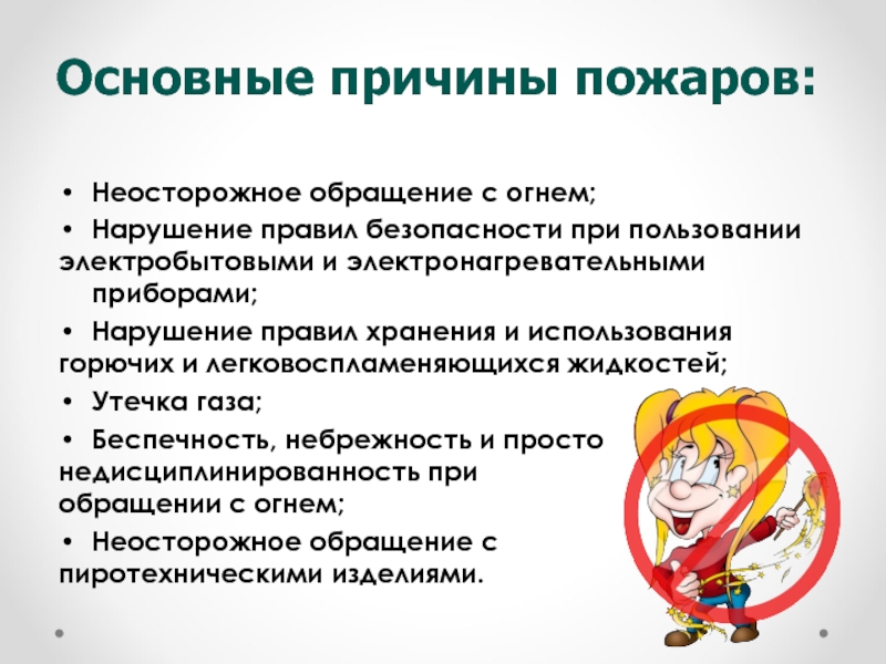 небрежности в обращении с огнем. Пожар может возникнуть всюду, где огонь оказался без контроля.