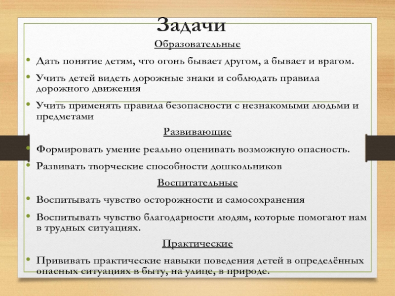 Дать понятие детям, что огонь бывает другом, а бывает и врагом.