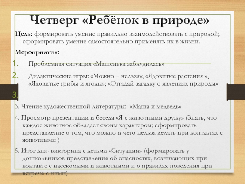 Цель: формировать умение правильно взаимодействовать с природой; сформировать