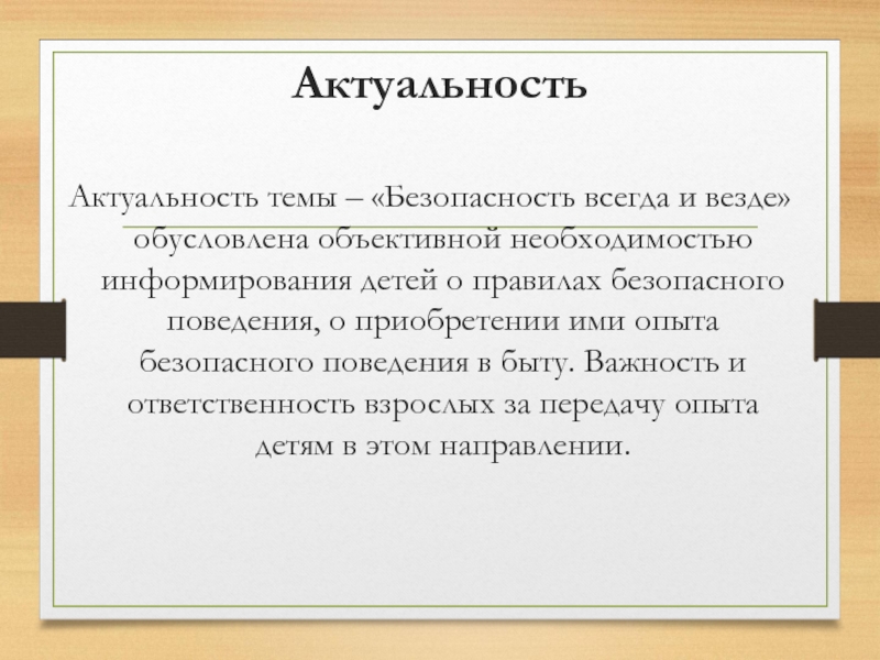 Актуальность темы – «Безопасность всегда и везде» обусловлена объективной