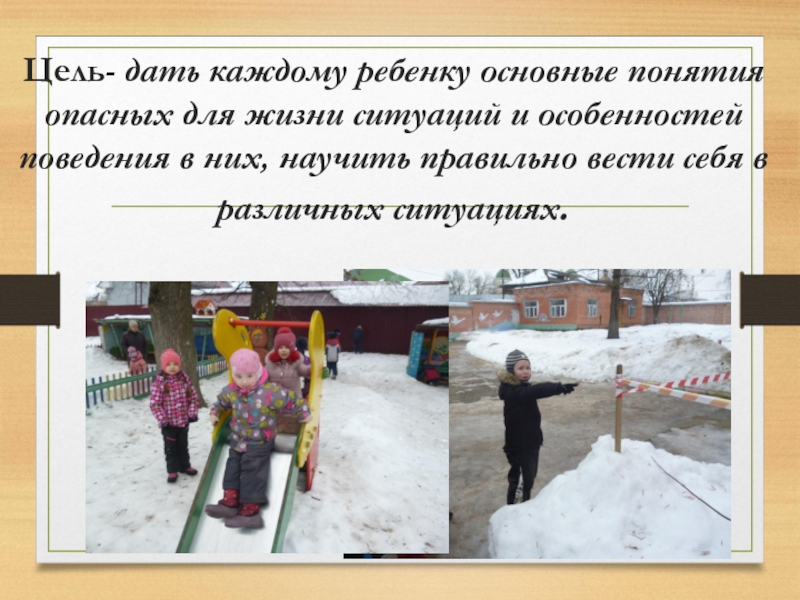 Слайд 3Цель- дать каждому ребенку основные понятия опасных для жизни ситуаций и