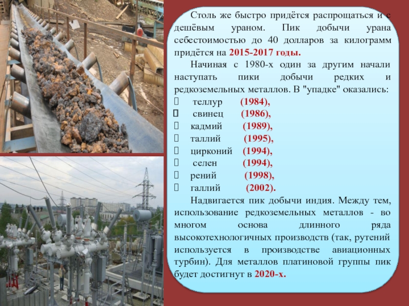 Начиная с 1980-х один за другим начали наступать пики добычи редких и редкоземельных металлов. В "упадке" оказались:
