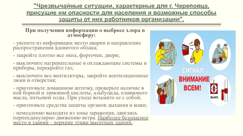 При получении информации о выбросе хлора в атмосферу: