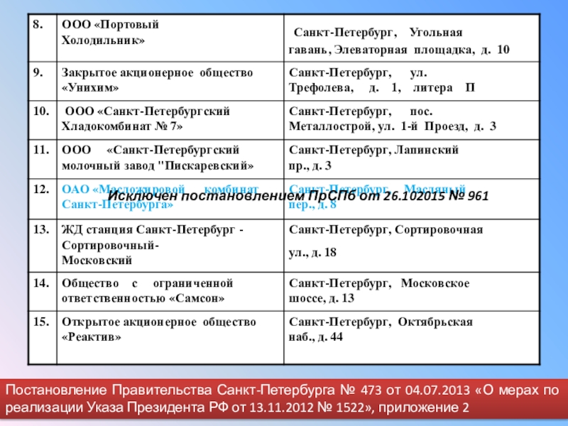 Исключен постановлением ПрСПб от 26.102015 № 961