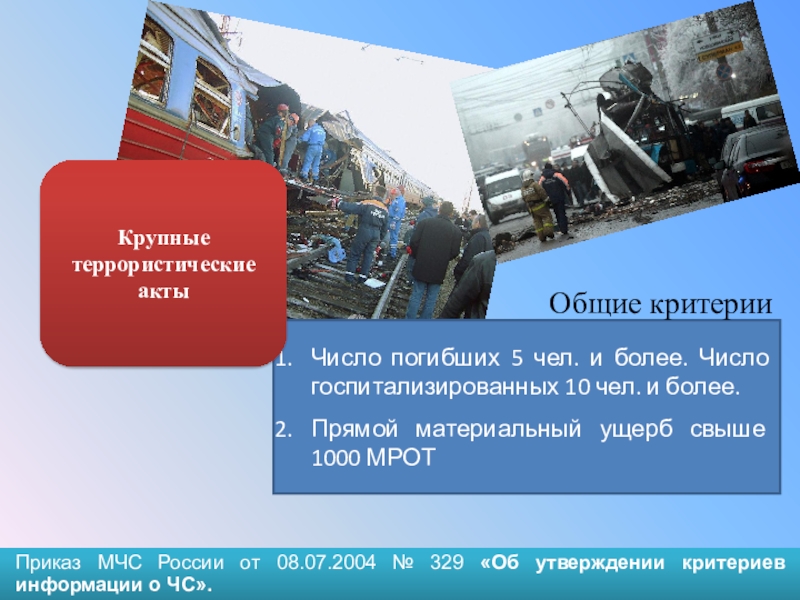 Число погибших 5 чел. и более. Число госпитализированных 10 чел. и более.